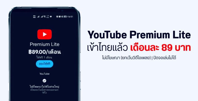 YouTube เปิดแพคเกจ Premium Lite ราคา 89 บาท/เดือน ไม่มีโฆษณาในคลิป