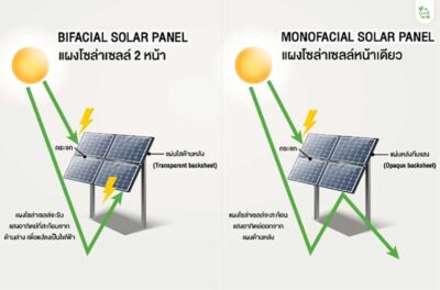 เปรียบเทียบ แผงโซลาร์เซลล์แบบหน้าเดียว และแบบ Bifacial