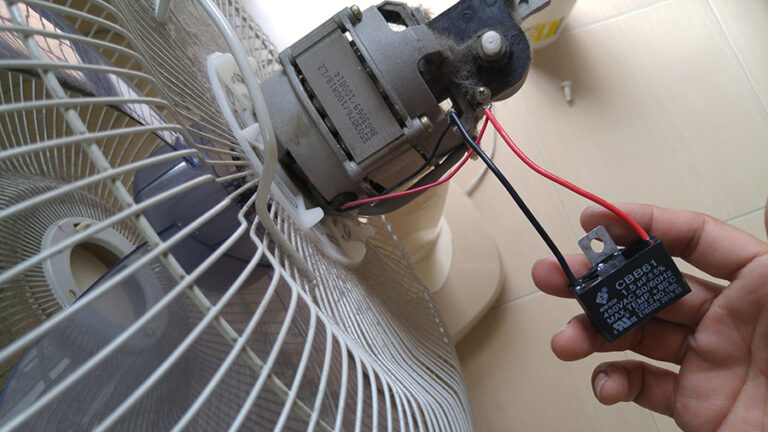 ซึ่งอาการที่พัดลมหมุนช้าไม่มีแรงหมุนนั้นสาเหตุหลักๆ เกิดมาจากแคปรัน (คาปาซิเตอร์) เสีย หรือเสื่อมคุณภาพนั่นเองซึ่งท่านสามารถหาซื้อมาเปลี่ยนได้ด้วยตัวเองโดยใช้งบในการซ่อมไม่เกิน 50 บาท โดยสามารถสั่งซื้อได้ทา